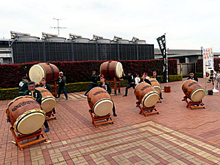 さらに、昼休みに内馬場で、府中市に残る伝統文化「武蔵国府太鼓」の演奏会も行われていました。 |  |  |