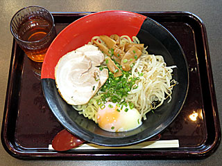 昼メシは フジビュースタンド2Fの 「西海製麺所」へ。 新作季節メニューの「 油そば」を注文。 チャーシュー2枚、温玉、モヤシ、そして麺は1.5玉とのこと。 普通においしかった! |