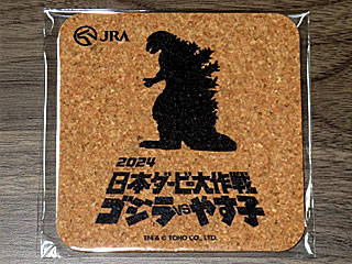 ちなみに今日は「 謎を解いてゴジラから東京競馬場を守ろう!最終決戦」という謎解きイベントが実施されていました。 キャンペーンブースで謎解き指令書を受け取り、食べ歩きしながら場内で謎解きイベントに参加。 そして全ての謎を解き明かし、キャンペーンブースに戻って抽選に参加したところ、B賞「 ゴジラコルクコースター」を貰えた! |