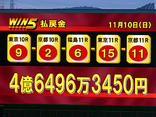 ちなみに今日の WIN5は7-7-7-15-3番人気での決着となり、的中1票で4億6496万3450円と大波乱の結果に! 歴代5位の高配当! |