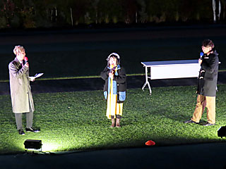 最後、パドックで「 キンタロー。ものまねショー&トークショー」が行われました。 司会進行は ムラコさんと オオタケさん。 ただ、非常に寒かった! |