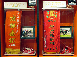また、府中本町駅前にある さくらコマースが運営するパチンコ屋「 スパークルⅡ」では、今年の 京都金杯および昨年の 東京新聞杯を制した サクラトゥジュールの優勝レイが展示されています。 |