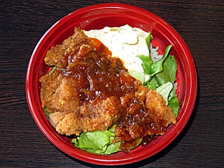 昼メシは フジビュースタンド1Fの 「台湾食堂八福」へ。 メニューからカレーライスが消え、それに代わって登場した新メニューの「 鶏排飯( ジーパイハン)」を注文。 名物の 大鶏排にタルタルソースをかけた丼。 ボリュームたっぷりでおいしかった! |