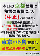 京都競馬は降雪のため中止 |