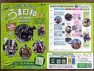 今日は火曜ですが 昭和の日でお休み。 それに合わせ、 昨年に続いて今年も「 今日はうま日和♪」と題したイベントが開催されたので、午前中にちょこっとだけ行ってみる。 まずは入口にて 東京競馬場乗馬センターオリジナルハンドタオルをいただく。 |