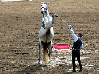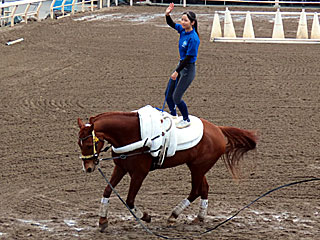 乗馬センターでは、通常の開催日でも行われている体験乗馬、馬車運行、ホースショーなどが行われていました。 |  |  |