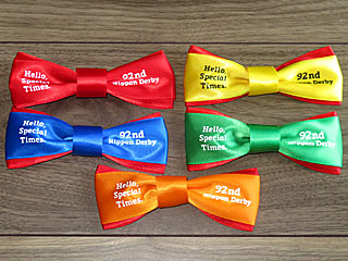 今日の Welcomeチャンス!は日本ダービー特別版。 毎年恒例の「 ダービーリボン」が3万4500人に当たるというもので、 2017年から始まり今年で9年目。 今日は何人かの知人たちと一緒で全員当選したが、ダブりもあって揃ったのは計5色。 |  |  |