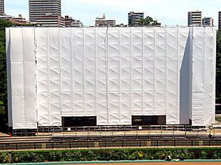 絶賛工事中の パドックビジョン。 全体がシートで覆われていました。 |