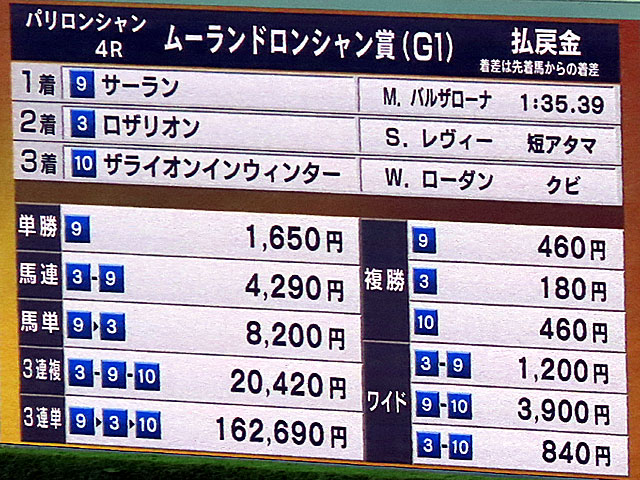 ![]() 前走、ジャックルマロワ賞で5着に健闘していましたが、今回は11着と残念な結果に… 勝ったのは仏国馬サーラン。