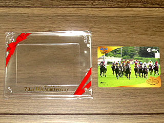 「JRAアニバーサリーオリジナルアクリルスタンド&QUOカード」を貰う。 |  |  |
