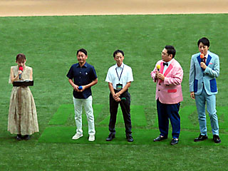 最後、パドックで「 JRAアニバーサリースペシャルトークショー」が行われたので見てく。 出演は 岡部玲子さん、 勝浦正樹元騎手、 武士澤友治元騎手、お笑いコンビの 三拍子。 |