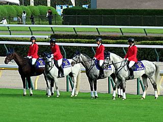 メインレースの 誘導馬。 今日は デルマラピスラズリ、 サクセスミノル、 サトノソルタス、 シフルマンが務めていました。 |