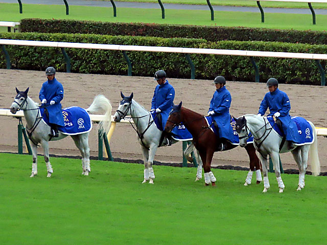 メインレースの 誘導馬。 今日は シュガーヒル、 サクセスミノル、 マイネルラクリマ、 ボスジラが務めていました。 |