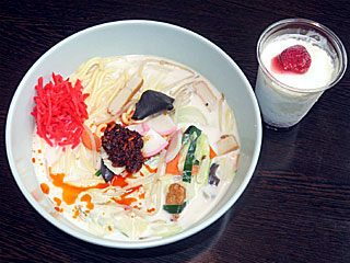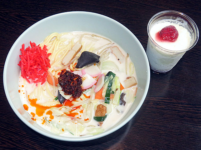 午後、小腹も空いていたので フジビュースタンド1Fの 「みまつ」へ。 「 麻辣ちゃんぽん」と「 みまつフラッペストロベリー」を注文。 麻辣ちゃんぽんは、普通のちゃんぽんに麻辣をひとつまみトッピングしたもの。 スープに混ぜて食べるといい感じに辛くておいしかった。 また、フラッペはいちごソースをカップの底に敷いたミルクシャーベットにいちごをトッピングして冷凍したもの。 麻辣の辛さが中和され、食べ合わせ的に超よかった! |