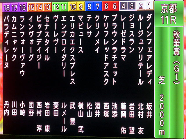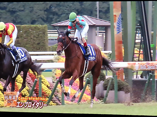 そして京都ではGⅠ 秋華賞。芝2000m。 オークス馬カムニャックが1番人気、 桜花賞馬エンブロイダリーが2番人気。 結果、勝ったのは エンブロイダリー。 アドマイヤマーズ産駒で、鞍上は C.ルメール騎手。 2着は逃げた5番人気 エリカエクスプレス、3着は追い込んできた6番人気 パラディレーヌ。 |