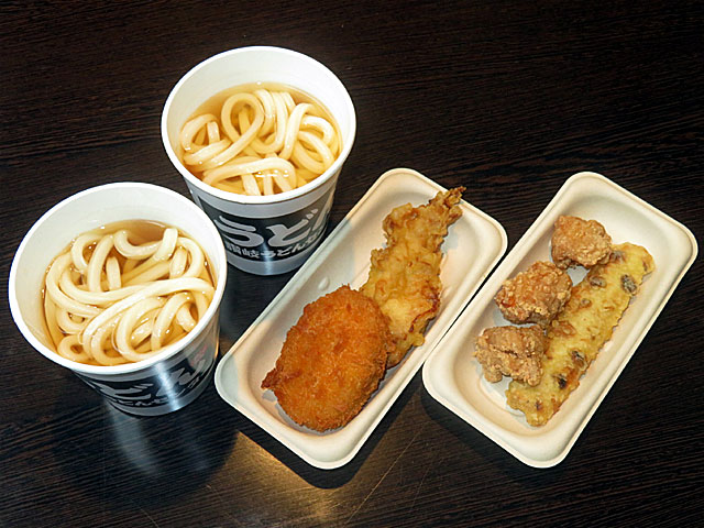 昼メシは「讃岐うどんセンター」へ。今日は連れと2人だったので「温かけうどん」「冷かけうどん」に、トッピング4種「コロッケ」「かしわ天」「鶏唐揚げ3個」「ちくわ天」を注文。 トッピングは一般的なうどん屋と同じ感じ。 そしてようやく食事メニューをコンプリート! | ||||||||||||||||||||||||||||||||||||||||||||||||||||||||||||||||||||||||||||||||||||||||||||||||||||||||||||||||||||||||||||||||||||||||||||||||||||||||||||