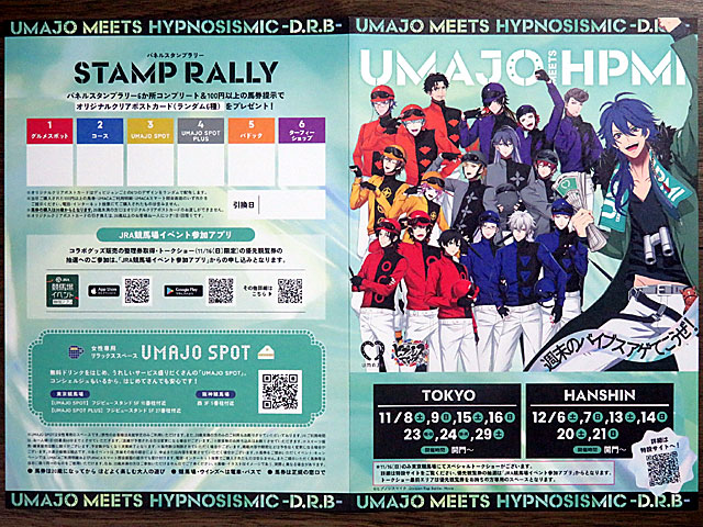 最終レース終了後、ターフビジョンで「UMAJO MEETS HYPNOSISMIC -D.R.B- スペシャルアナウンス」という映像が流されました。去年は「UMAJO×ENSEMBLE SQUAREスペシャルライブ」と題したアニメーションが流されていたので、そのようなものかと思っていましたが、今年は静止画のみ10秒くらいで終わってしまった… | ||||||||||||||||||||||||||||||||||||||||||||||||||||||||||||||||||||||||||||||||||||||||||||||||||||||||||||||||||||||||||||||||||||||||||||||||||||||||||||