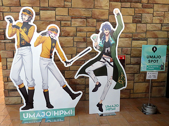 今開催では「UMAJO MEETS HYPNOSISMIC -D.R.B-」と題したヒプノシスマイクというアニメ?とのコラボイベントが行われています。去年は「UMAJO×ENSEMBLE SQUARE」というコラボをしていましたが、この開催は毎年UMAJO×女子向けコンテンツを定番化させるとか? とりあえずどんなコラボイベントが実施されているのかを眺めてみることに。 正門前広場ではコラボグッズの販売が行われていました。 ただ、混雑防止のため、グッズを買うには「競馬場イベント参加アプリ」で整理券を入手する必要があり、それも早々に配布終了になっていました。 購入客のほとんどは競馬場へ初めて来るような女子だと思いますが、このために競馬場イベント参加アプリをインストールし、開門直後にすぐさま整理券を入手とかの作業をこなしているのかと思うと凄すぎる… | ||||||||||||||||||||||||||||||||||||||||||||||||||||||||||||||||||||||||||||||||||||||||||||||||||||||||||||||||||||||||||||||||||||||||||||||||||||||||||||