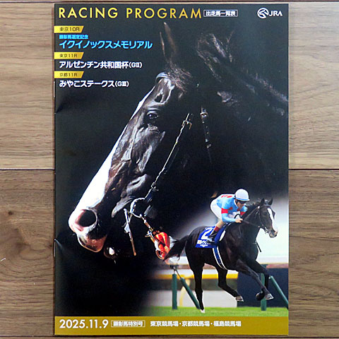 今日は朝から雨。 そして今日はイクイノックス顕彰馬選定記念デー。 まずは「 イクイノックス特別版レーシングプログラム」を入手。 |