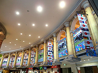 今日から4週に渡って行われるGⅠ エリザベス女王杯、 マイルCS、 ジャパンC、 チャンピオンズCは「 ジャパンオータムインターナショナル」と題してシリーズ化されています。 それに合わせ、今年もフジビュースタンド3Fに装飾が施されています。 |