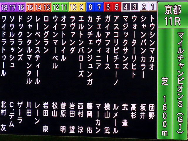 そして京都11RはGⅠ マイルチャンピオンシップ。芝1600m。 単勝1.8倍の圧倒的な支持を受けたのが ジャンタルマンタル。 そして結果も ジャンタルマンタルが快勝! 朝日杯FS、 NHKマイルC、 安田記念に続き、マイルGⅠ4勝目。 パレスマリス産駒の牡4で、鞍上は 川田将雅騎手。 |