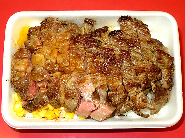 さらに フジビュースタンド3Fの 「ペッパーランチ」へ。 先週、GⅡを食べたので、今日は「 ステーキグランプリ重GⅠ」を購入。 GⅢを基準に、 GⅡはお肉2倍、GⅠはお肉3倍とのことだが、実際に測ってみたところ、GⅡは約190g、GⅠは約290gだった。 ってことはステーキ肉100g=500円ってことか? ただ、誤差範囲かもしれないが前回も今回も約10g少ないのは少々残念。 系列の「いきなり!ステーキ」は1グラム単位できっちり売っているのだし… |