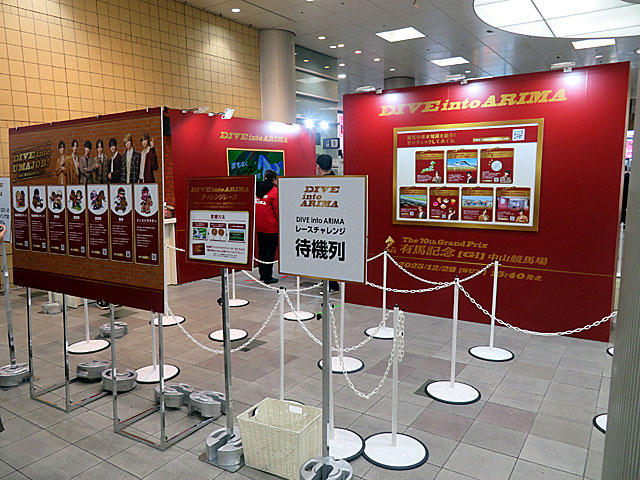 今日は有馬記念の街頭イベントへ参戦するために渋谷へ。今年のキャンペーンはHey!Say!JUMPを起用した「DIVE into ARIMA」とのこと。 昨年はJO1、今年のダービーはGENERATIONSだったので、3回連続女子向けタレントの起用に。 ちなみに去年の会場は「渋谷モディ」でしたが、今年は「渋谷マークシティ」。 とりあえず「レースチャレンジ」と題した疑似レース1着当てゲームに参加してみたがハズレたので、リーフレットと参加賞のステッカーだけ貰う。