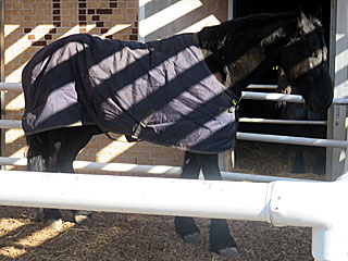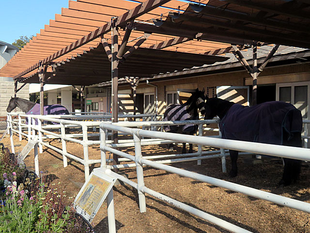 この時期にしては比較的暖かい1日となった パークウインズ東京競馬場。 まずは 乗馬の展示コーナーへ。 今日は ビーウルケ、 サファイア、 ペラの3頭が展示されていましたが、 サファイアという馬は新顔。 馬車用のフリージアン種とのこと。 |