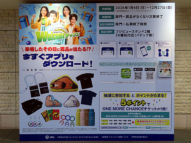 HOLIDAYS!チャンス時代から数えて6年目となる「Welcomeチャンス!」は今年もサービス継続。開催初日は参加ポイント2倍デー! 早速、今年最初の抽選に参加してみたところ、運良くD賞が当選し「サコッシュ」をいただく。 また、昨年末にリセットされたWelcomeスタンプは昨年と同じデザインでした。 ちなみに、昨年「賞品もりもり!!!」が廃止されたのに続き、今年は「UMACA de Wチャンス」も廃止とのこと…