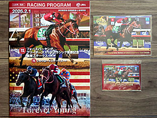 今日はフォーエバーヤングBCクラシック優勝記念デーということで、 東京競馬場は入場無料の「 フリーパスの日」となりました。 それに合わせて レーシングプログラムも特別版。 また、先着3万人に「 フォーエバーヤングBCクラシック優勝記念ポストカード」、先着2000人に「 フォーエバーヤングBCクラシック優勝記念UMACA用オリジナル着せ替えステッカー」も配布されていました。 |