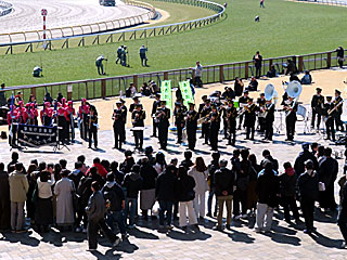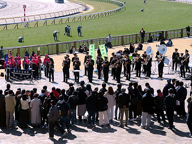 昼休み、フジビュースタンド前にて「 警視庁音楽隊&カラーガードMECによる演奏演技」が行われていました。 |
