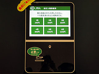 GⅠ開催日などの相当な混雑が予想される日(日本ダービー、天皇賞秋、ジャパンカップ当日など)を除き、開催当日に各入場門で立見入場券の現金発売も行われています。(タッチパネル式の自動券売機でQRコードチケットを購入) なお、当日発売されるのは立見入場券のみで、指定席/スマートシートはネットによる事前発売のみです。 |