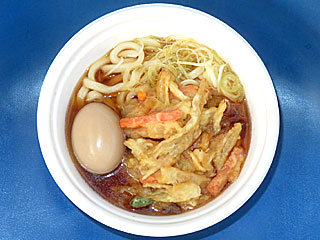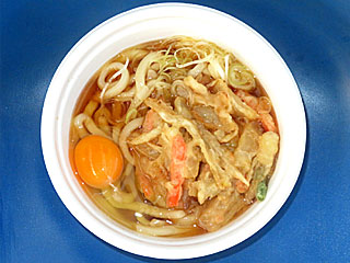 (うどん、鶏肉、煮玉子、天かす、ネギ)
