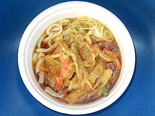 (うどん、鶏肉、ポテトコロッケ、天かす、ネギ)