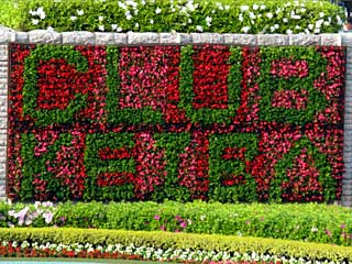 恒例となっているパドックの花装飾。 今年は「CLUB KEIBA」が花文字で表現されています。 |