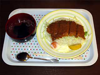 さて、今日もまずはメシから。 フジビュースタンド1Fにある 「カジュアル稲松」へ。 「 カツみそ御膳」を注文。 いわゆる味噌カツで、それに半熟たまごが付いている。 味噌カツ自体、個人的にあんま好きではないのだが、まずまずウマイ! |