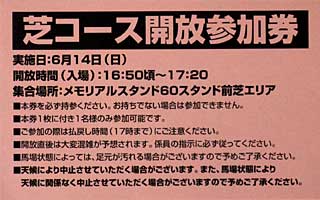 今日は春の東京開催最終日。 毎年恒例、芝コース開放のイベントも行われるが、参加券は 昨日入手済み。 ってことで、最後の東京開催をゆっくり満喫! |