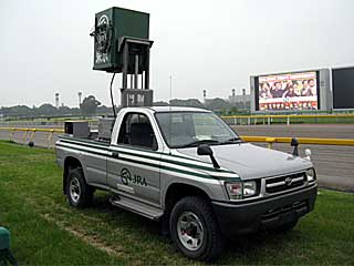 レースの発走を行うスターターが立つ スタート台を間近で。 |  |  |