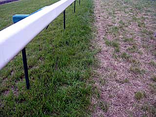 さて、毎年気になるのは芝の痛み具合。 今年は 日本ダービーの勝ち時計が驚異的な遅さだったこともあり、非常に興味深い。 下の画像は左から外ラチ付近、馬場中央、内ラチ付近の順。 やっぱ内ラチは荒れているが、思った程極端に荒れているわけではなかった。ここをロジユニヴァースが走っていたかと思うと、ちょっと感動! |