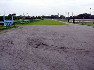 ダートコースを横断! ちょうど、ダート1300mの発走地点付近かな? |  |  |