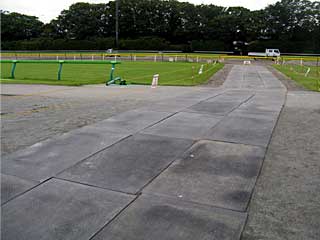 東京競馬場の周回コースは4つあり、最内から 調教コース、 障害コース、 ダートコース、 芝コース。 で、まずは調教コースを横断。 調教コースと言ってますが、現在は基本的に使用されていません。 |  |  |