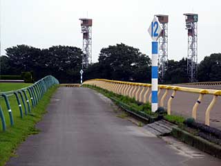 そして、ダートコースの残り1200mの ハロン棒。 この付近で仮設通路は折れ、再びコースをまたぐ。 |