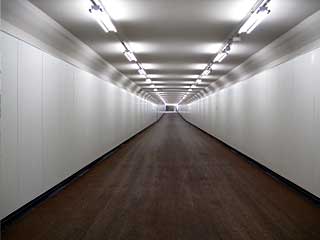 場所は変わって 馬場内地下通路。 7/4時点では鉄筋むき出しだったが、白い壁が整備されました。 これで完了なのかな? 以前は牧場風景などの写真が飾られていたが、そういった装飾はされないのかな? |