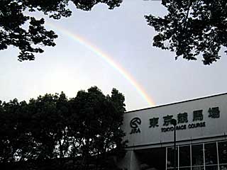 夕方、突如の夕立ち。 その後、競馬場に虹が架かりました。 |