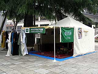 今日のメインは「 サウジアラビアロイヤルカップ 富士ステークス」。 ってことで、 正門前に、サウジアラビア王国のPRブースが出ていました。 |