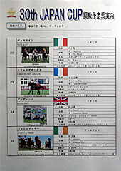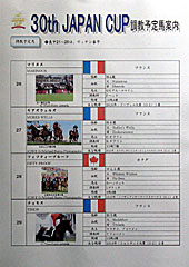 今年、JCに出走予定の外国馬は全部で8頭。 入口では ゼッケン表も配布されていました。 イタリアの ヴォワライシと フランスの ティモスは、まだ 競馬学校に滞在しており、東京競馬場には入厩していない。 よって、今日の調教は6頭。 |
