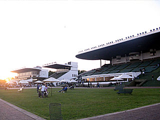 で、スタンドはこんな感じ。 手前が一般エリアのスタンド。 奥に見えるのが上位エリアのスタンドです。 |