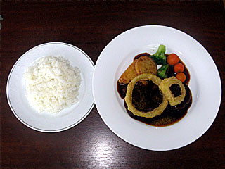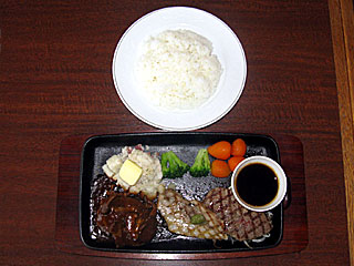 ミックスグリルは、牛肉のステーキ2種とハンバーグのセット。 ミックスだけにお得! でもって、これもおいしい! |