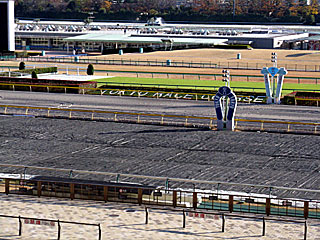 芝コースは保護のため、シートで覆われていました。 まぁいつものことです。 来年 1/26の東京開催に向け、馬場のメンテナンスが続いています。 |