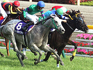 そして迎えた ヴィクトリアマイル。 1番人気は、昨年の牝馬GⅠで2着4回とあと一歩が届かなかった ヴィルシーナ。 その ヴィルシーナが好スタートから2番手を追走。 直線で早めに抜け出したところ、外から 昨年の優勝馬 ホエールキャプチャが追い込んできて、2頭並んでゴール。 写真判定の結果、ハナ差で ヴィルシーナが念願のGⅠ初制覇! |
